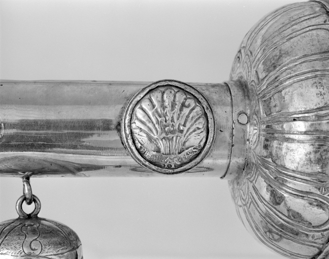 Détail d'un médaillon : motif végétal et inscriptionImmatriculation