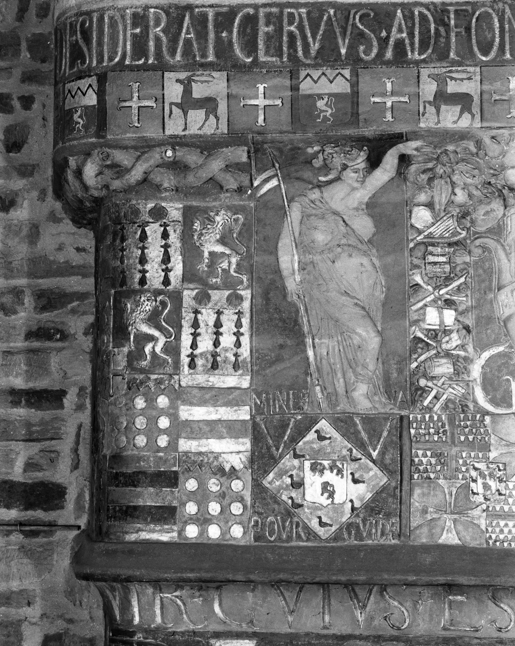Château, cheminée, partie gauche de la hotte : détail de Minerve.Immatriculation