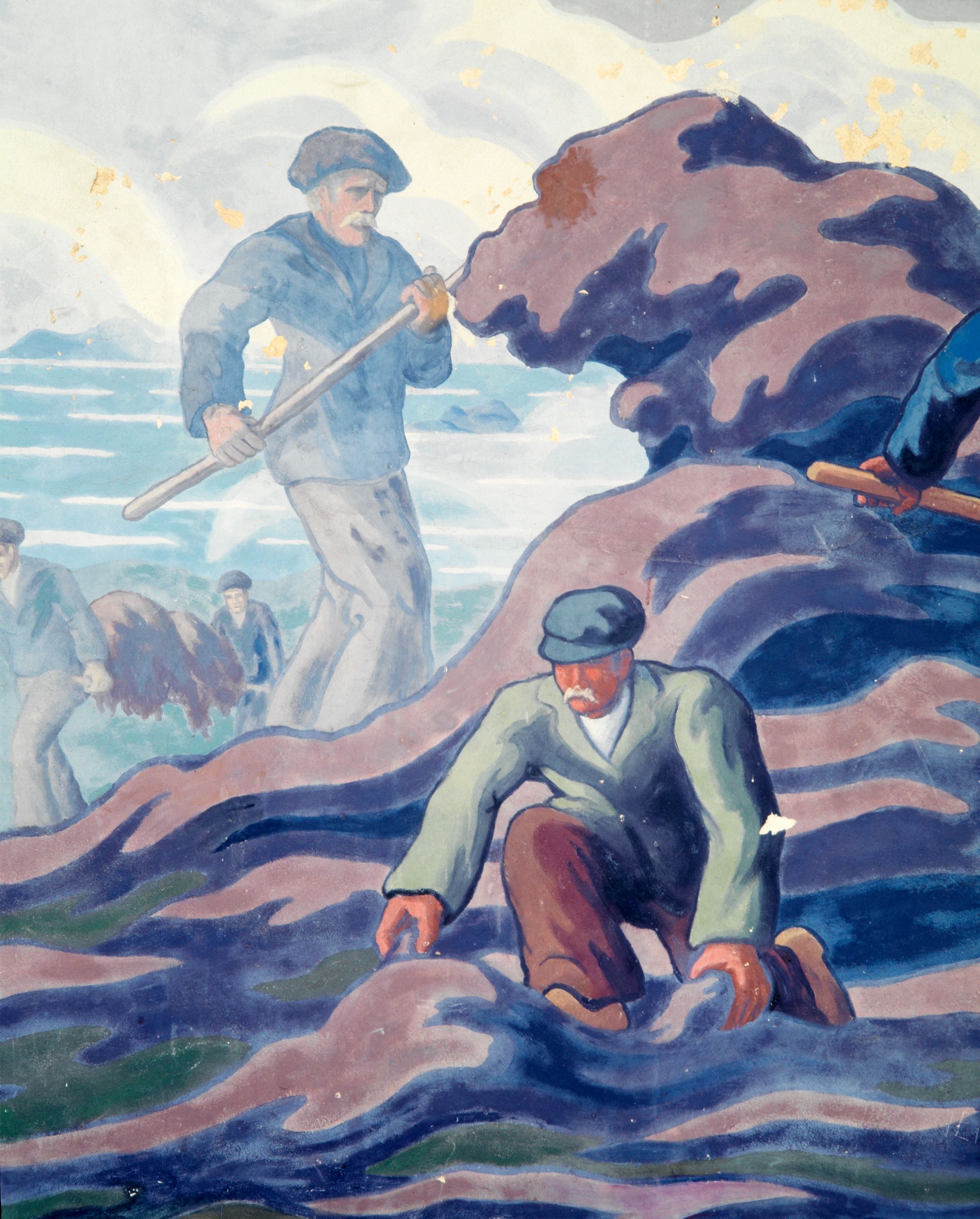 Panneau n°5 : détail des personnages ramassant le goémonImmatriculation
