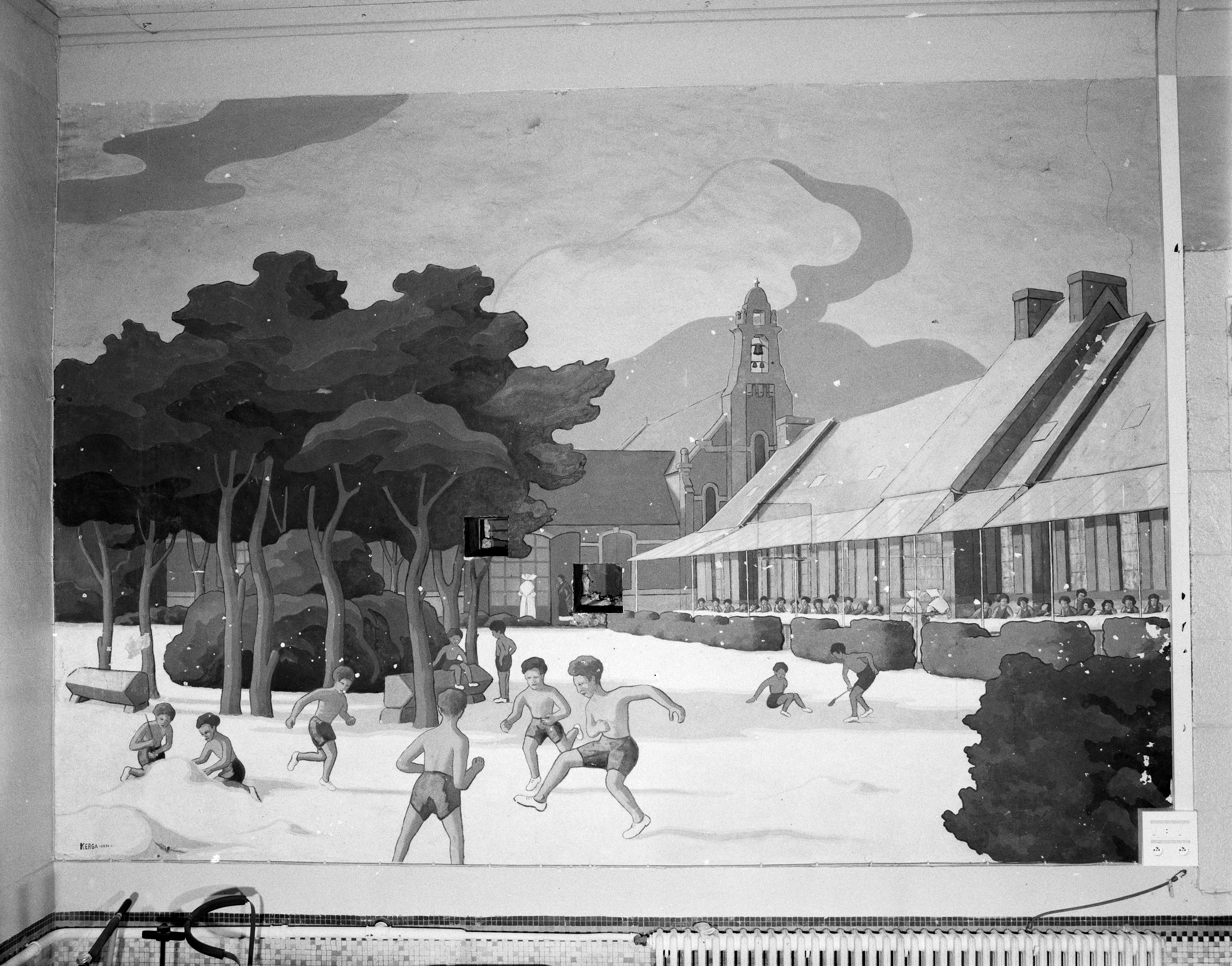 Panneau n°8 : vue géérale, enfants jouant devant le centre hélio-marinImmatriculation
