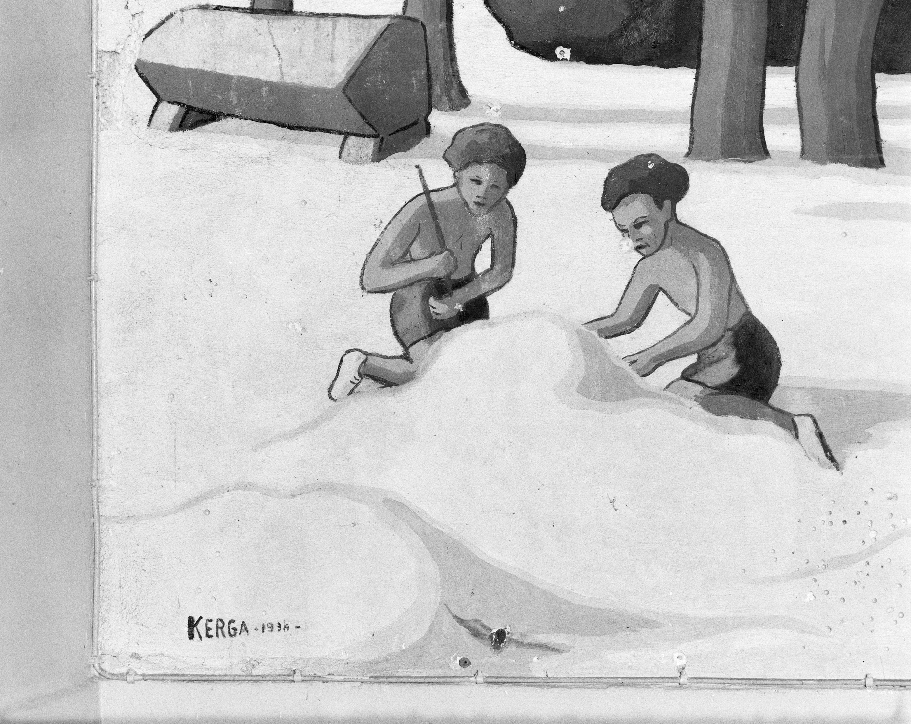 Panneau n°9 : détail de deux enfants et de la signatureImmatriculation