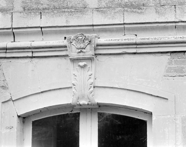 Elévation est, rez-de-chaussée, détail de la clé d'une baie.Immatriculation