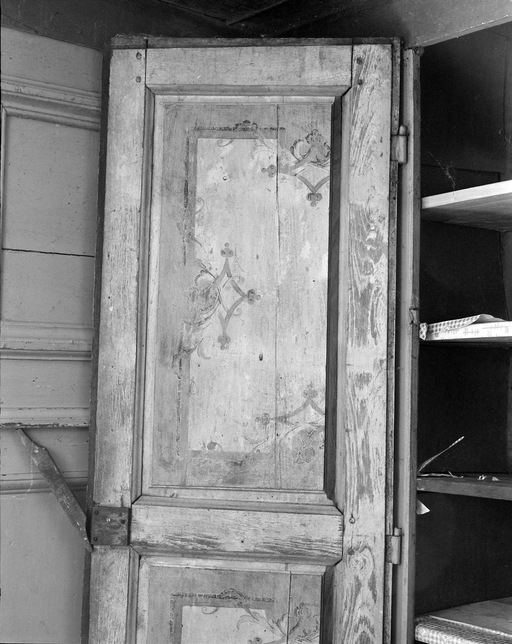 Rez-de-chaussée, chambre nord, détail d'un vantail de placard ouvert, côté droit.Immatriculation
