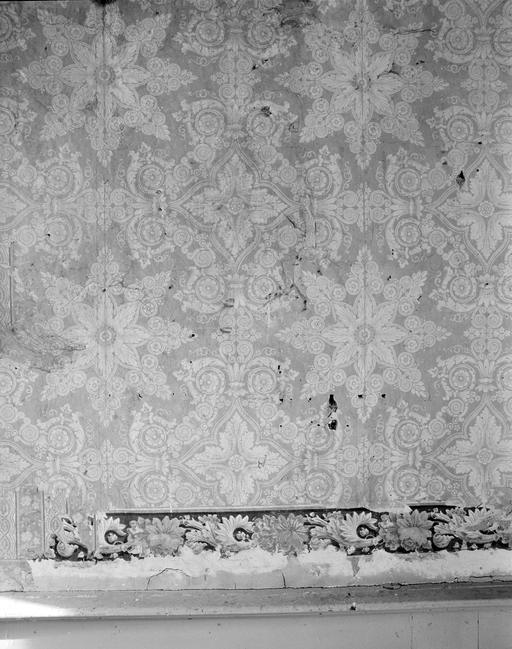 Premier étage, chambre nord n°1, mur ouest, vestiges du papier peint.Immatriculation
