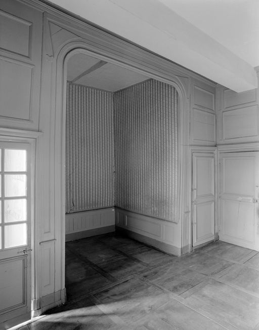 Premier étage, grande chambre sud, alcôve et portes des gardes robes.Immatriculation