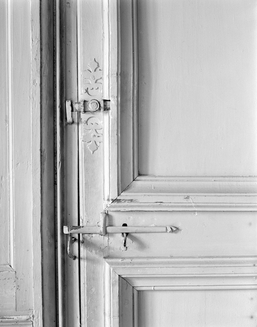 Premier étage, grande chambre sud, détail de la porte de la garde-robe.Immatriculation