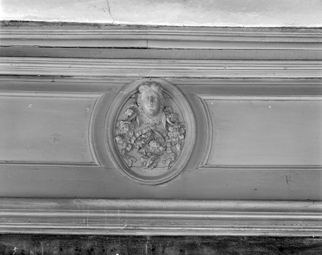 Rez-de-chaussée, pièce sud, mur sud, détail d'un haut relief..Immatriculation