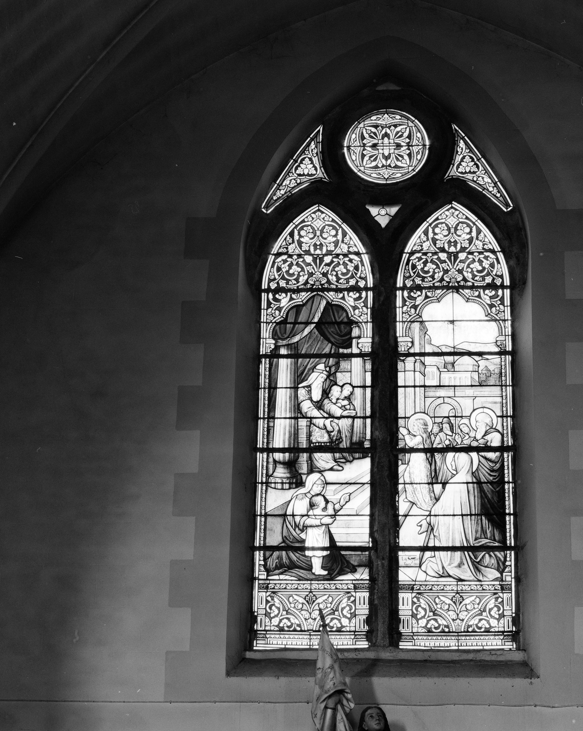 Verrière de la baie 1 : Présentation de la Vierge au Temple (état en 1992)Immatriculation