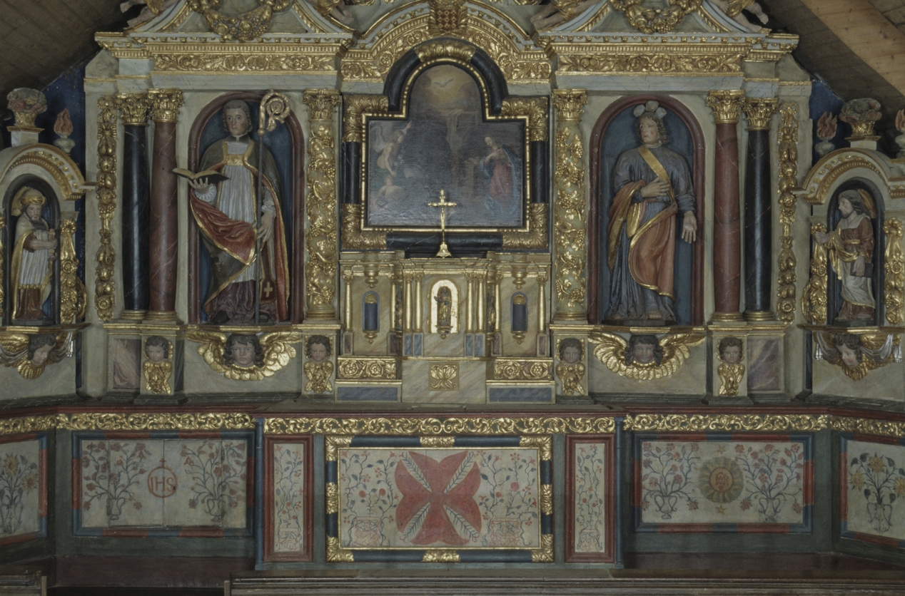 Chapelle Saint-Mélec, maître-autel : les deux niveaux inférieurs du retableImmatriculation