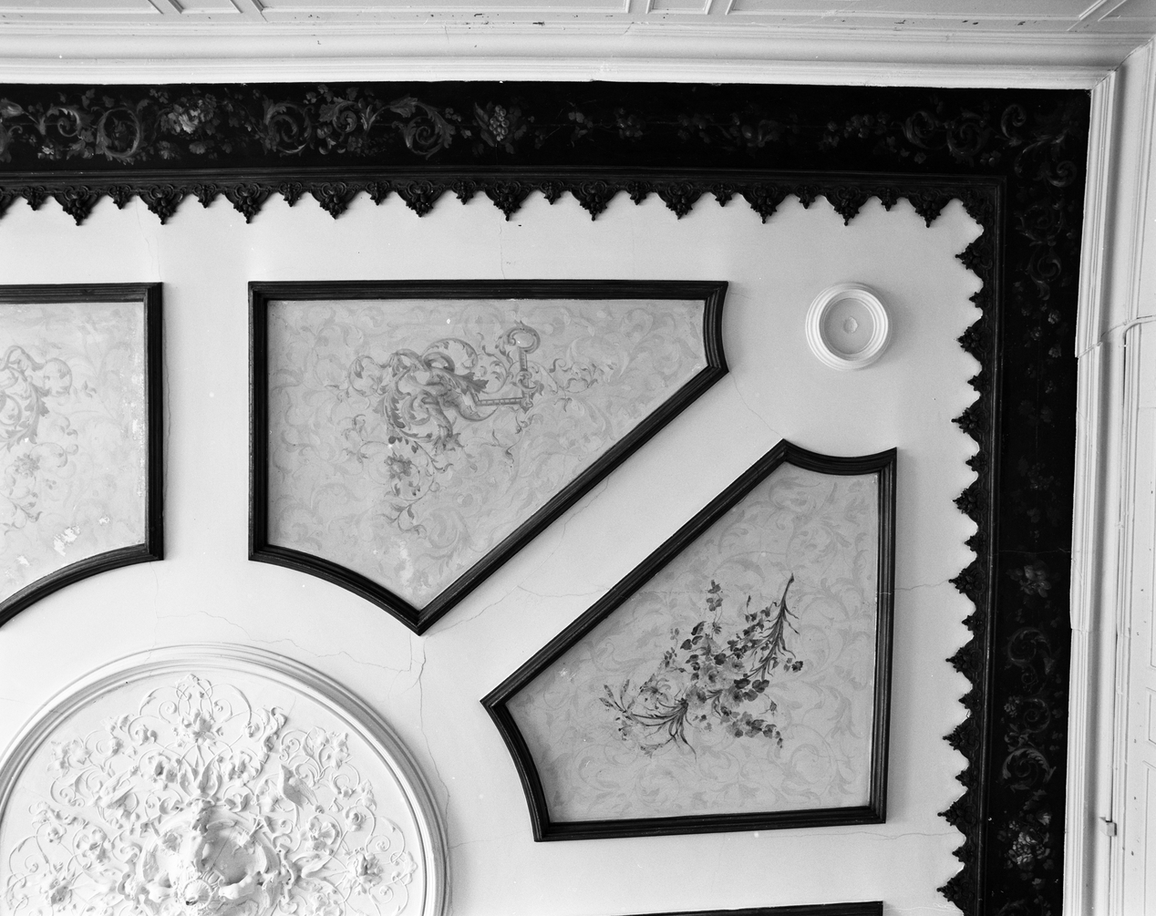 Château, rez-de-chaussée, salle à manger : décor du plafond, détail.Immatriculation