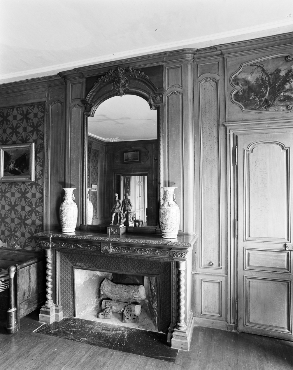 Château, petit salon (salon ver) : cheminée.Immatriculation