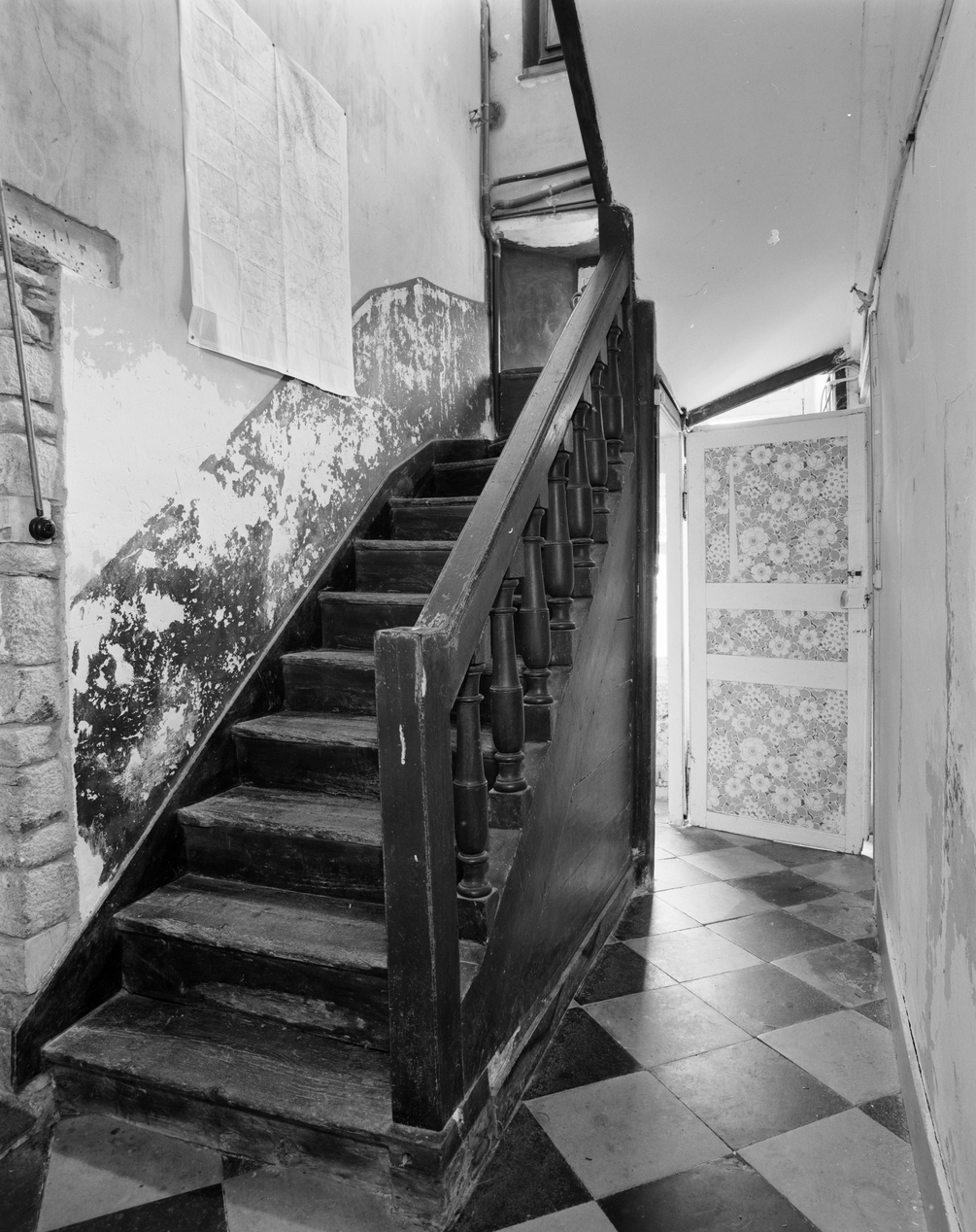 Château, rez-de-chaussée, pavillon ouest, escalier médian.Immatriculation
