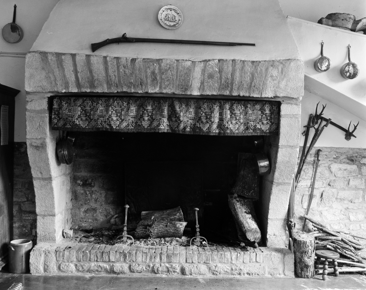 Château, rez-de-chaussée, pavillon est, pièce nord : cuisine, cheminée.Immatriculation