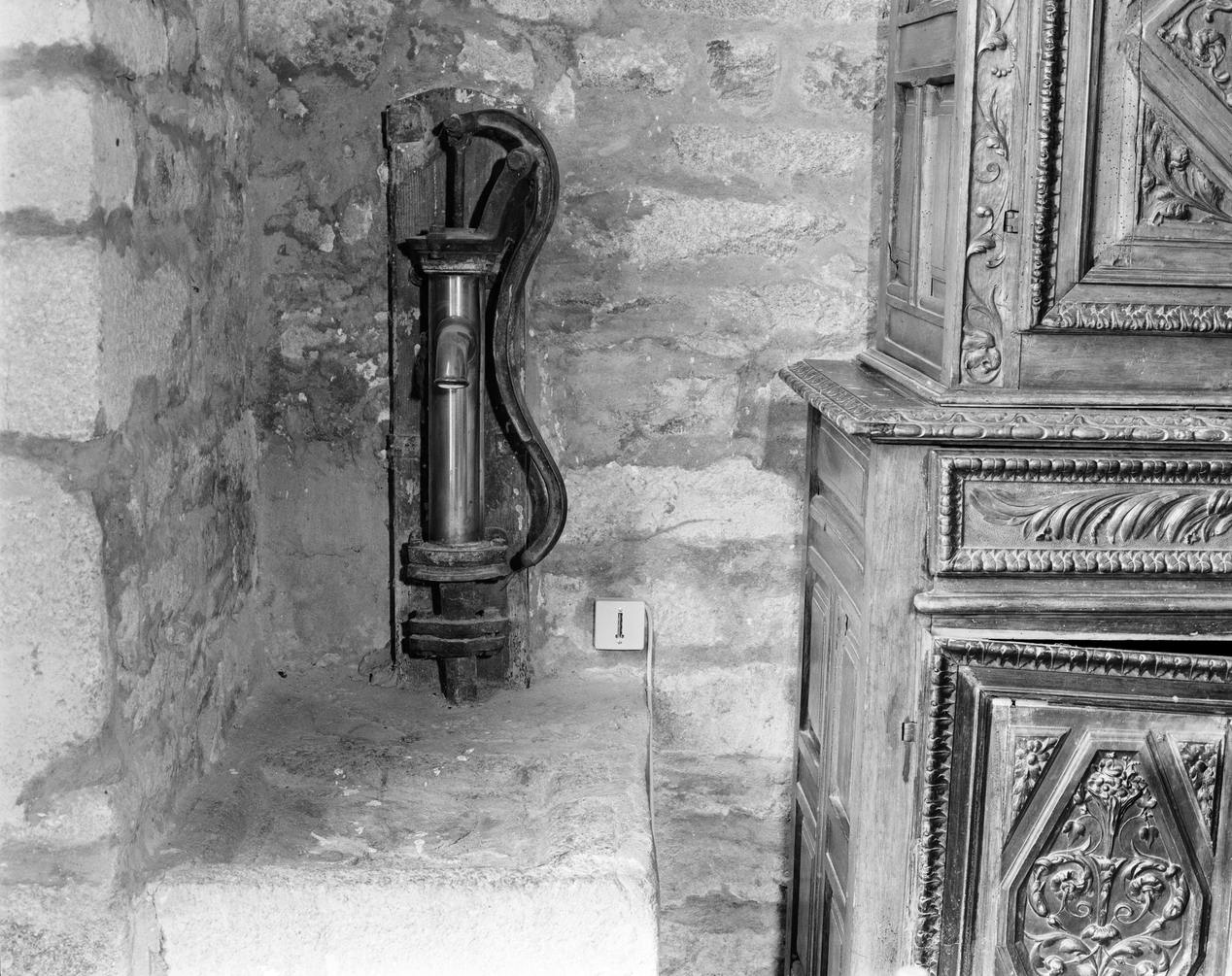 Château, rez-de-chaussée, pavillon est, pièce sud : pompe et évier.Immatriculation