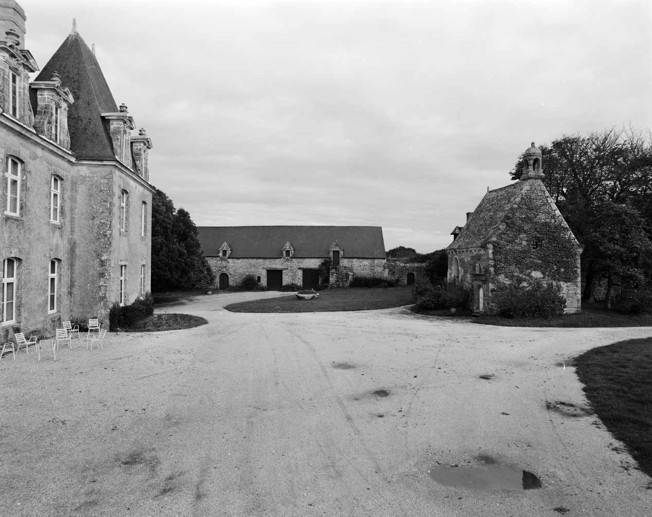 Château, communs et chapelle. Vue prise de l'ouest.Immatriculation