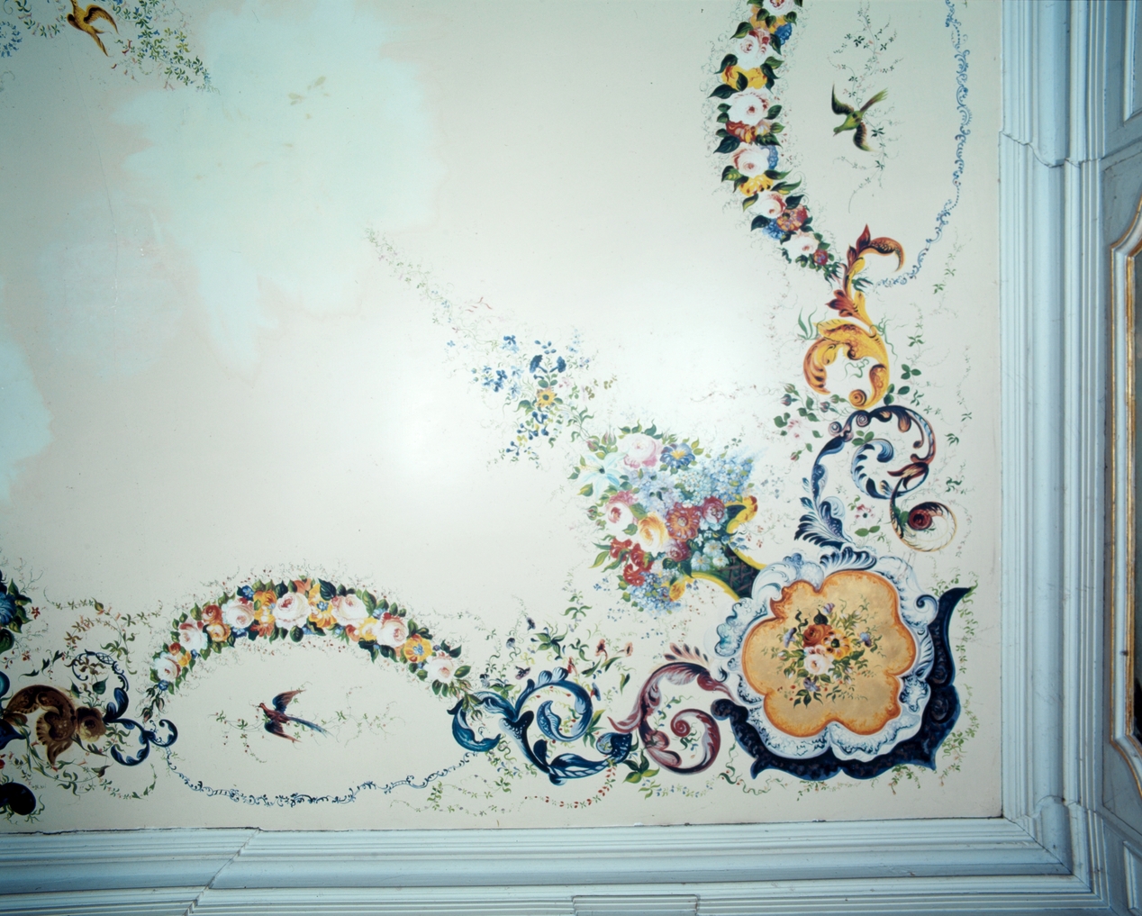 Château, rez-de-chaussée, pièce axiale : grand salon, plafond, angle, décor-peint;Immatriculation