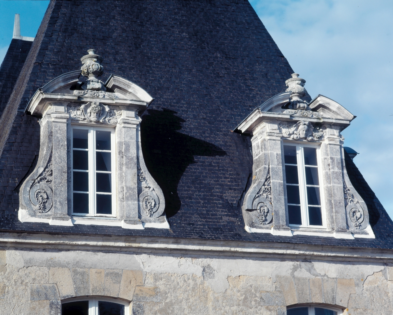 Château, pavillon sud-est. Elévation sud, lucarnes.Immatriculation