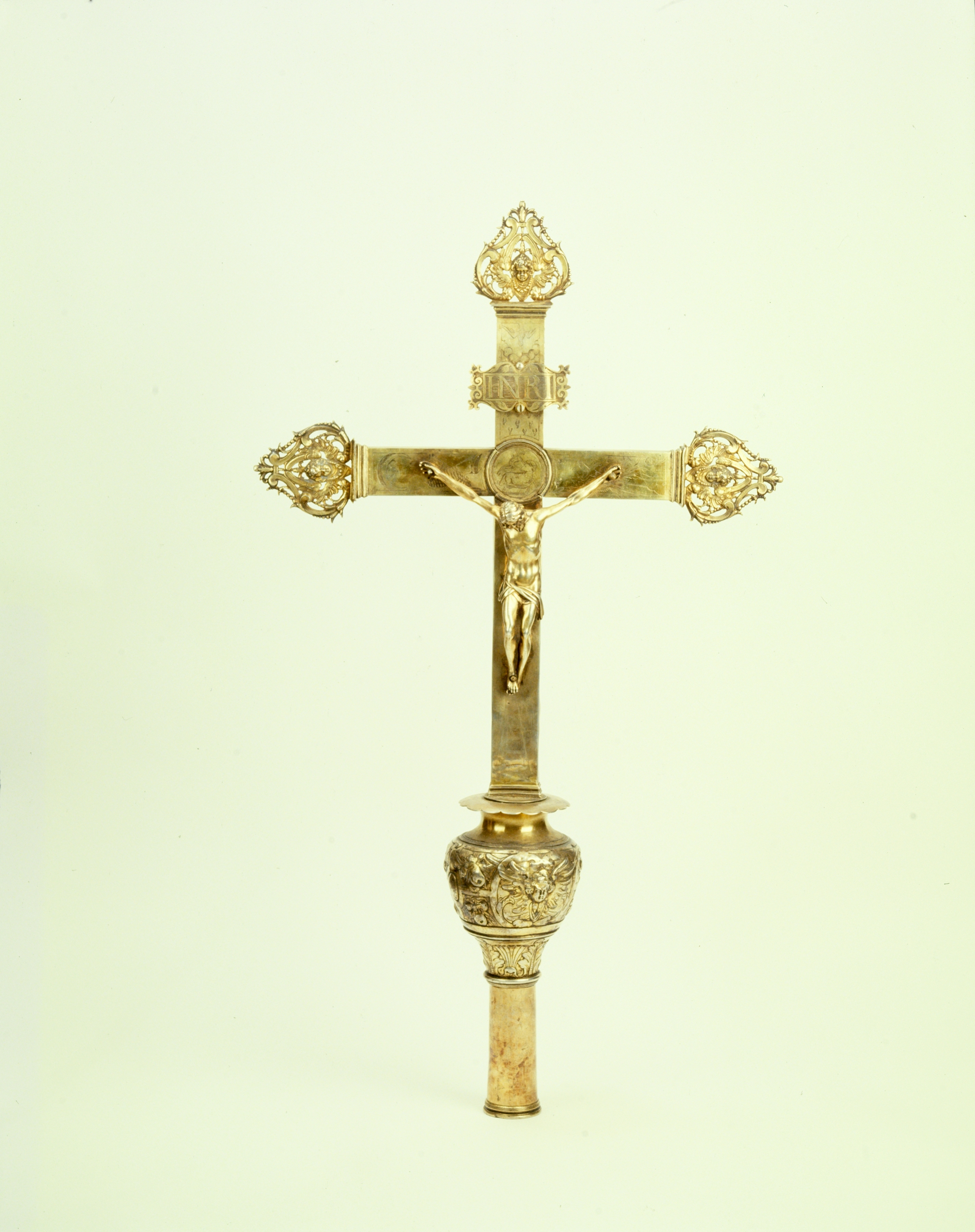 Croix de procession, vue générale de face. (Fonds thématique orfèvrerie de Basse-Bretagne (56), vol. 3).Immatriculation