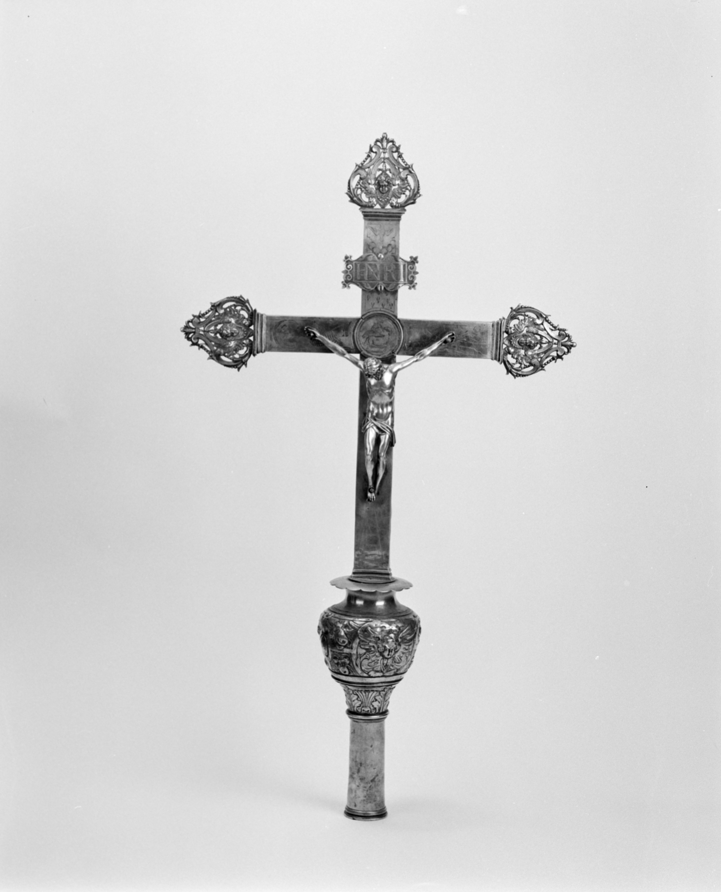 Croix de procession, vue générale de face. (Fonds thématique orfèvrerie de Basse-Bretagne (56), vol. 3).Immatriculation