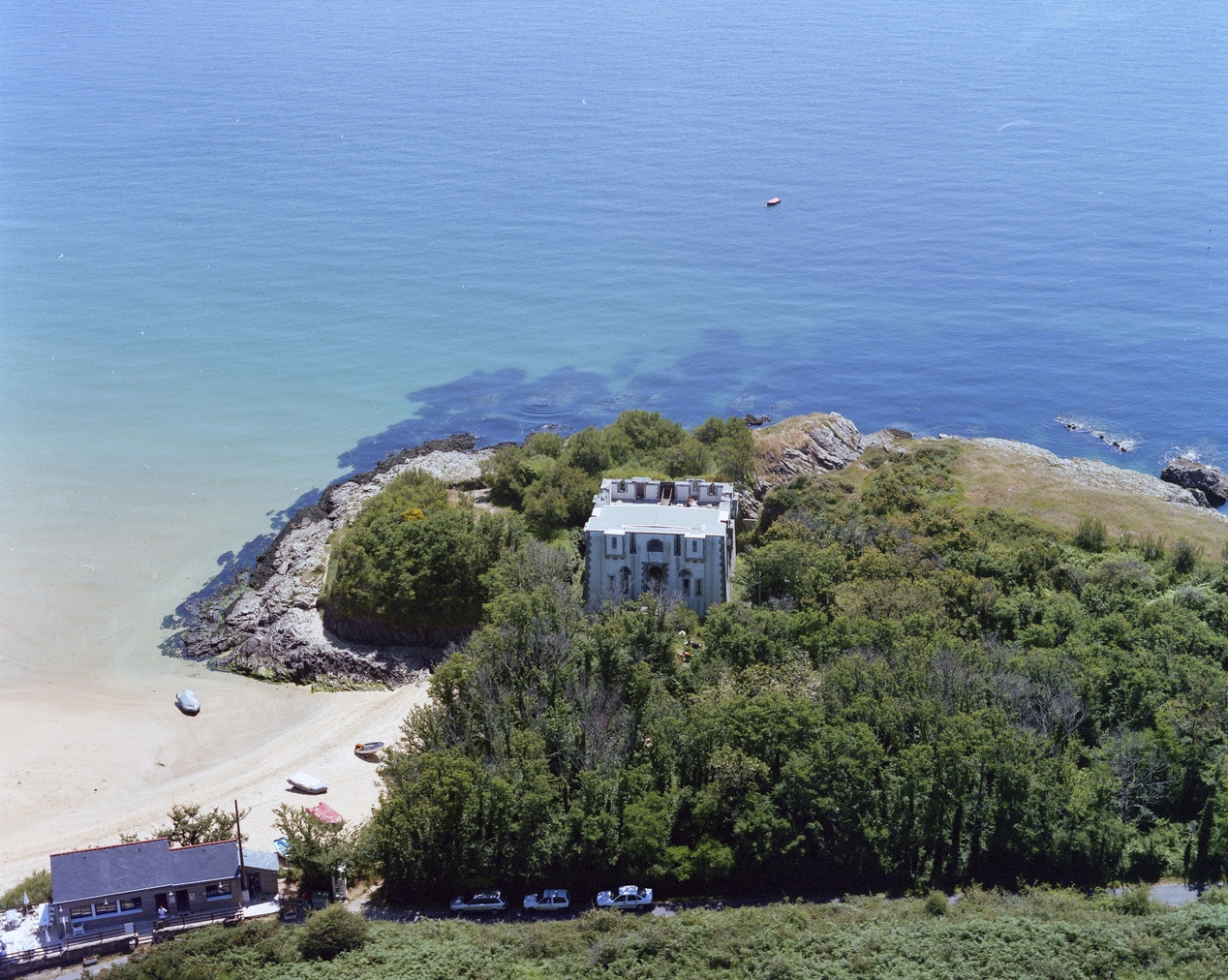 Locmaria, Port Andro, tour crénelée, vue aérienne depuis l'ouest.Immatriculation