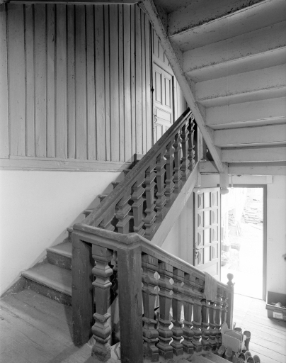 Maison de marchand. Escalier tournant à retours avec jour, en charpente. Etat en 1996Immatriculation