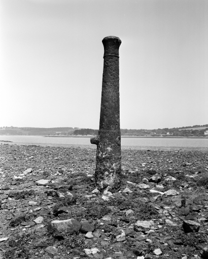 Vue de l'un des deux canons-bollards (pièces d'artillerie déclassées) plantés sur la grève : il permettait d'échouer les chalands à marée basseImmatriculation