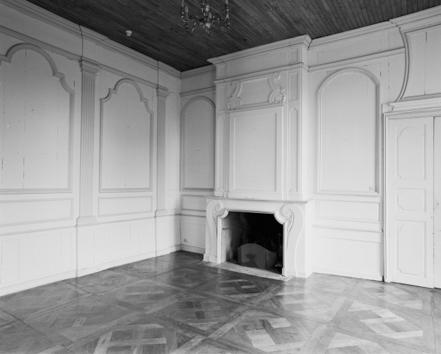 Rez-de-chaussée, partie sud, pièce sud : cheminée et lambrisImmatriculation