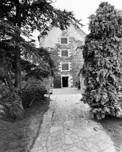 Vue du magasin à poudre : pignon oriental (état en 1996). Le magasin est entouré d'un mur de sûretéImmatriculation
