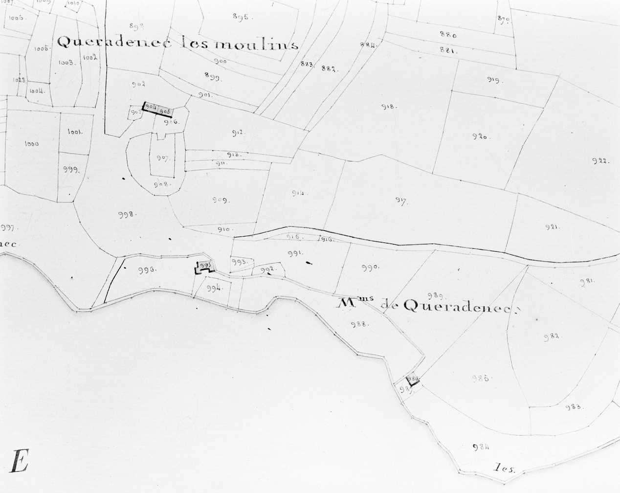 Moulin de Quéradenec, cadastre ancien 1818, section D2.Immatriculation
