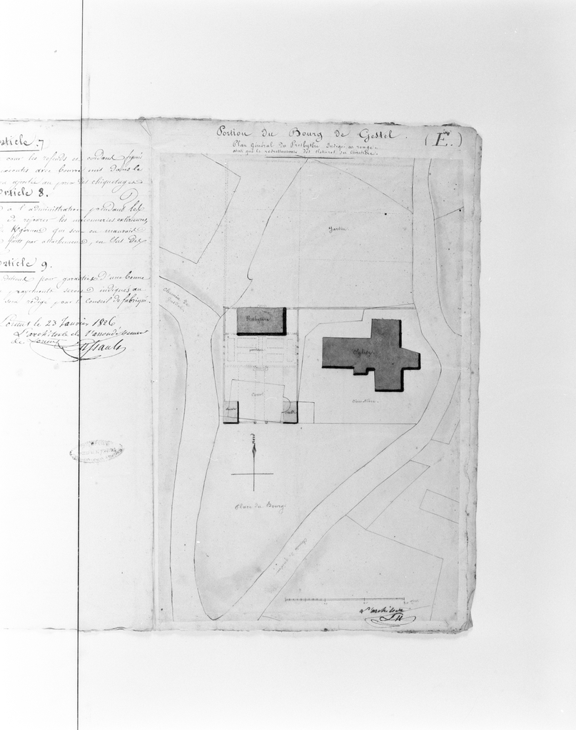 Premier projet : plan masse de l'église, 1825. Signé Lussault, architecte.Immatriculation