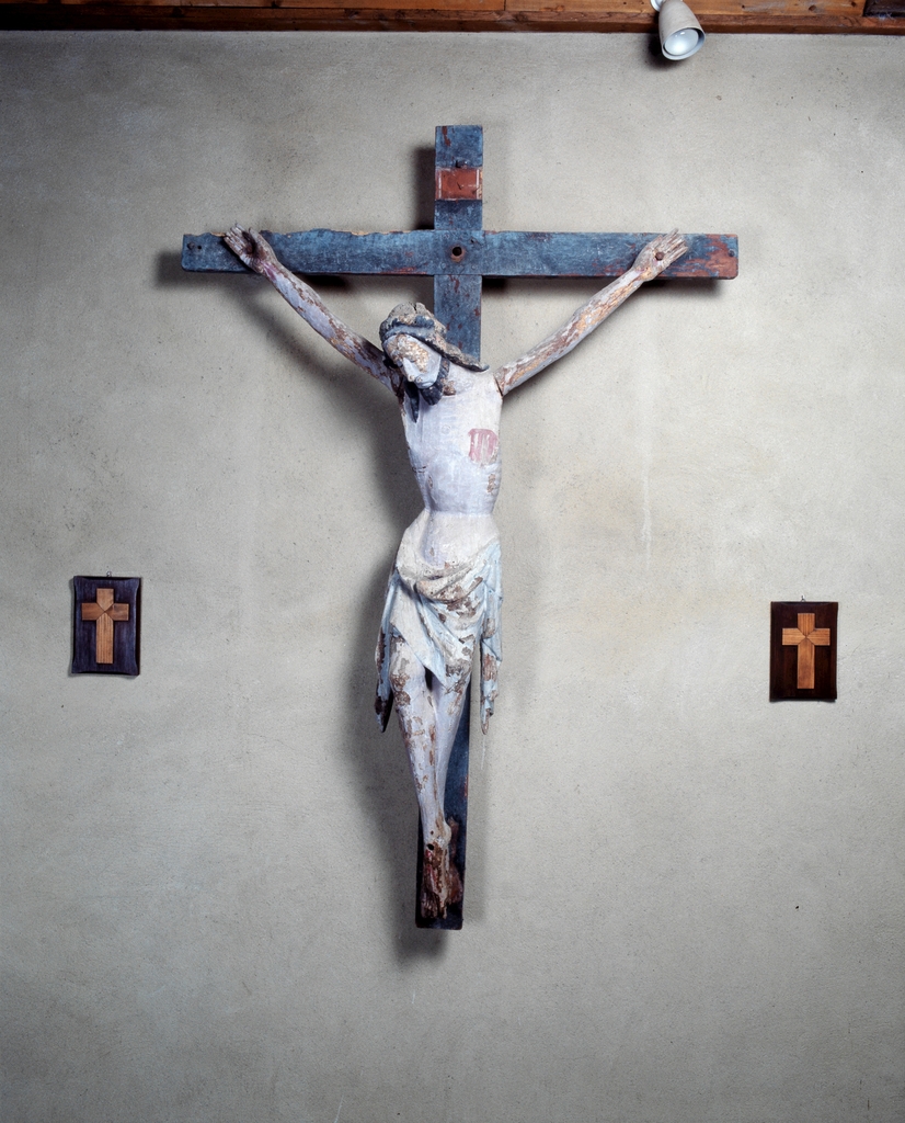 Croix : christ en croix, chapelle Notre-Dame-de-Trescouët et Notre-Dame-des-neiges (Caudan),