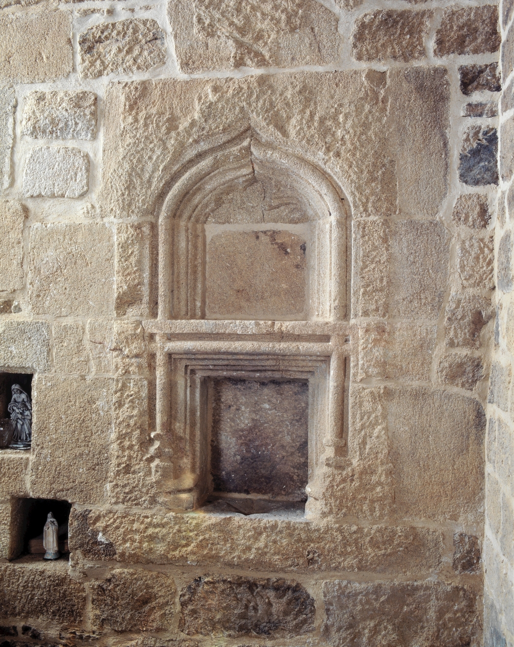 Mur est, détail de la niche crédence.Immatriculation