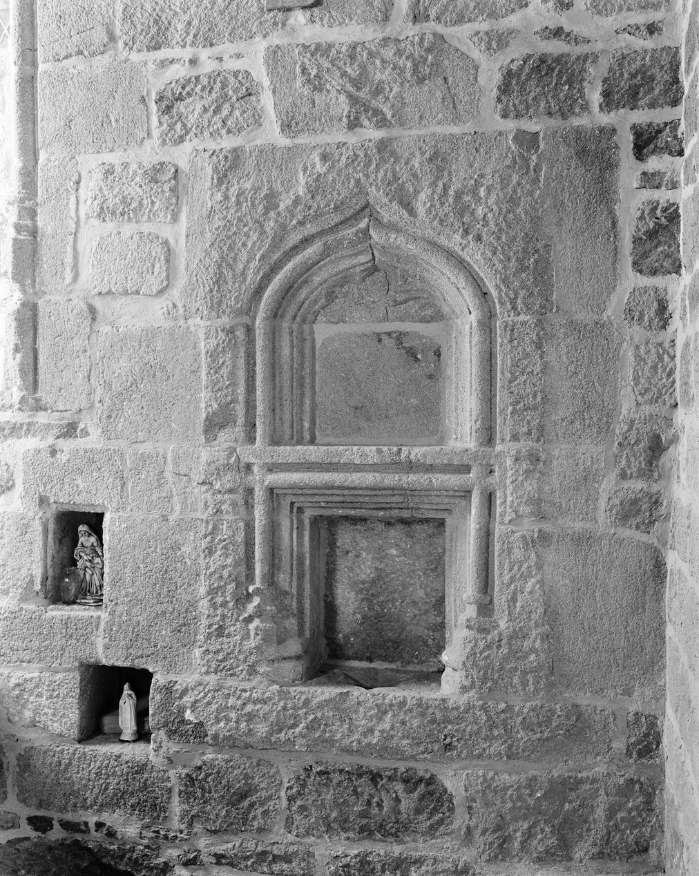 Mur est, détail de la niche crédence.Immatriculation