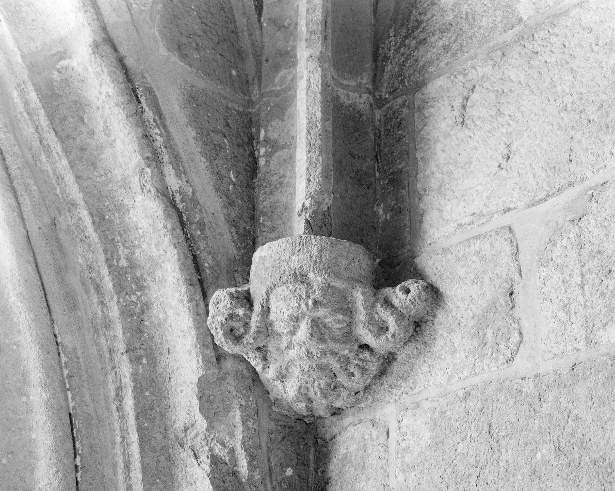 Porche Nord : angle nord-est, détail du départ de nervures de la voûte : tête d'homme barbu.Immatriculation