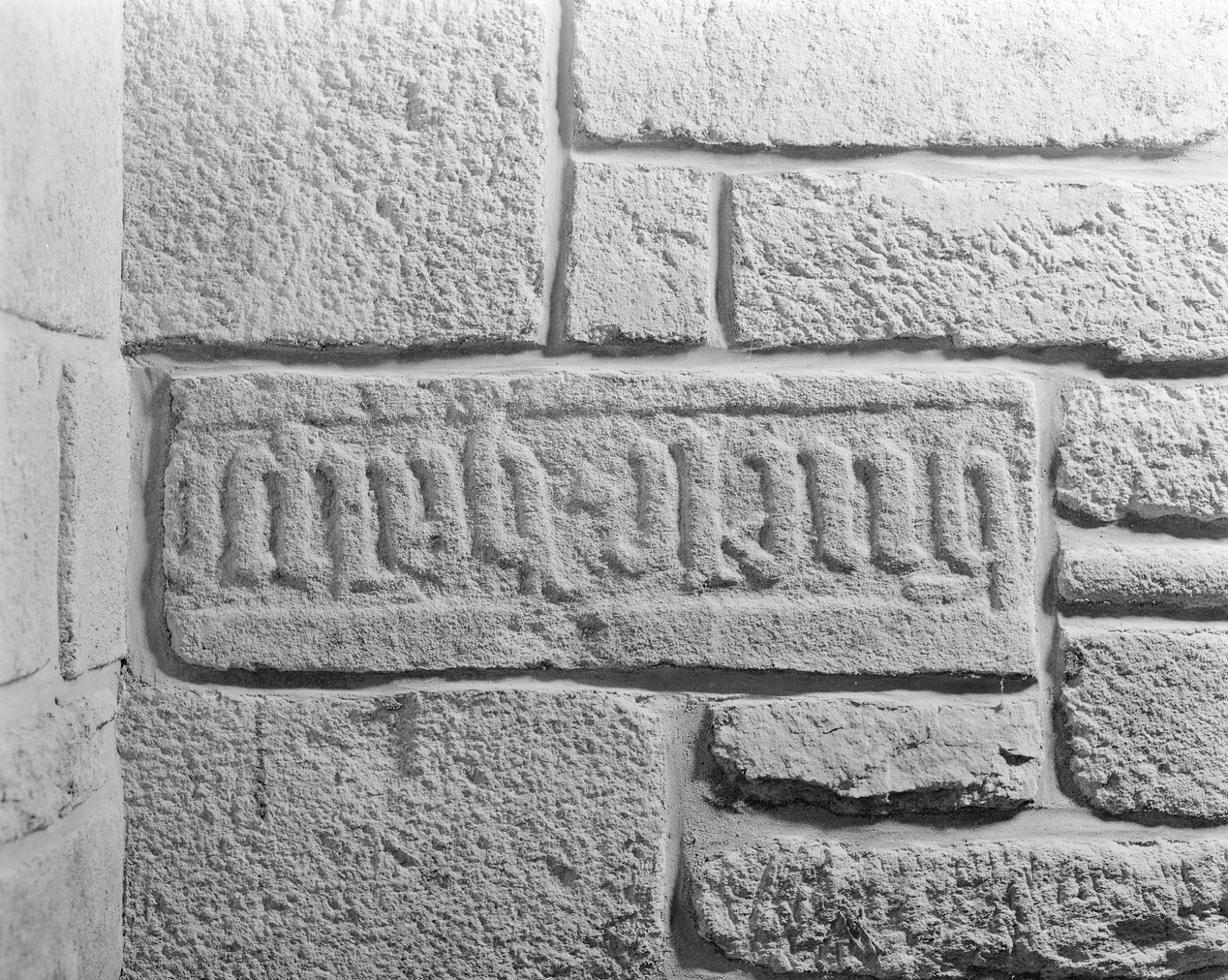 Bras nord, mur nord. Détail d'une inscription en remploi.Immatriculation