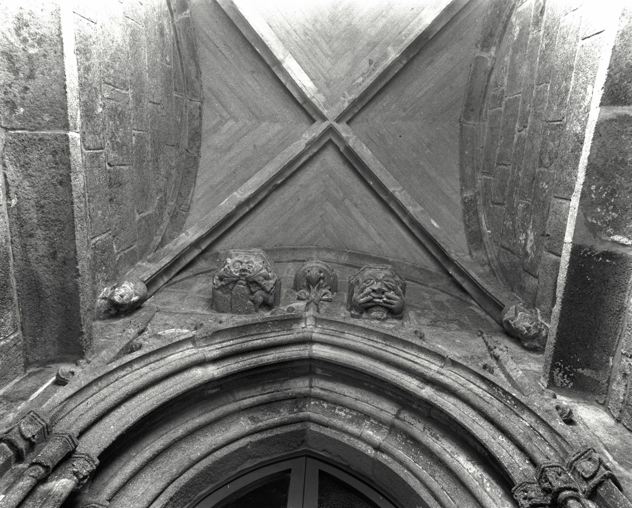 Porche Nord : détail des trois supports de statues.Immatriculation