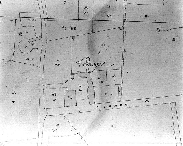 Plan cadastral de 1807-1809. Section E1 : château de Limoges. AM Vannes 21Fi.Immatriculation