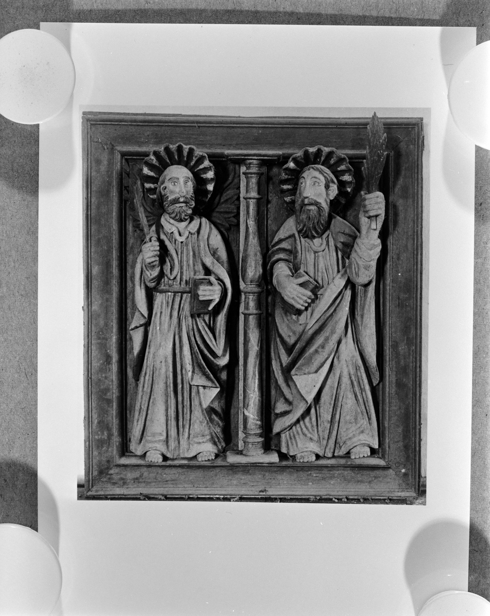 Hauts reliefs de l'ancien jubé, saint Jacques le Majeur (?), saint Jacques le Mineur (?).Immatriculation