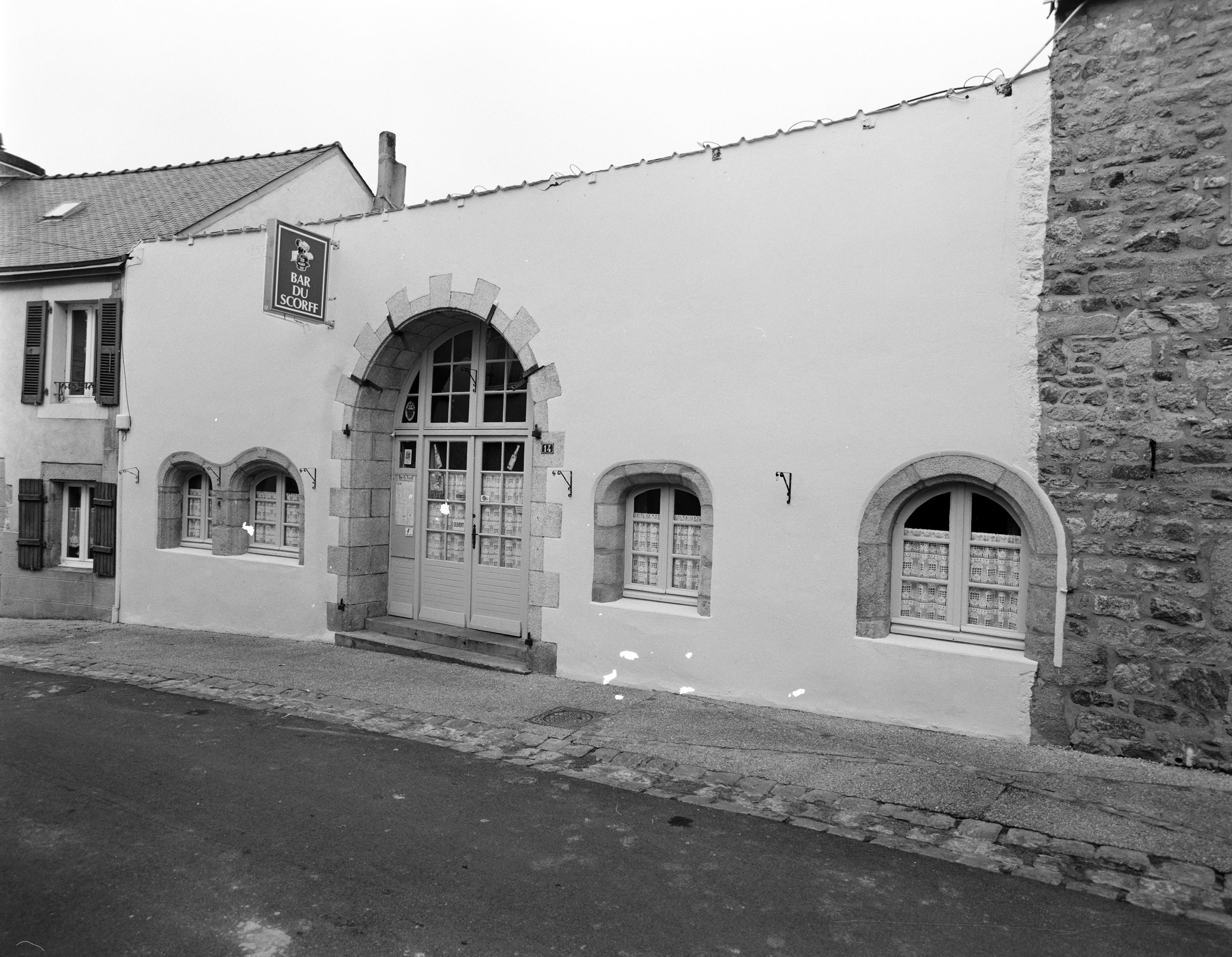 14 rue du Bas Pont-Scorff, bar du Scorff, vue générale de la façade. n°14 rue du Pont Romain, élévation est.Immatriculation