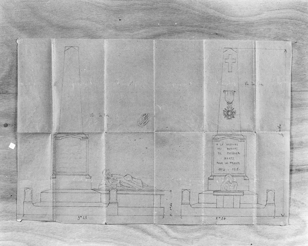 Plan de face et de côté du monument aux morts (1914-1918),Immatriculation