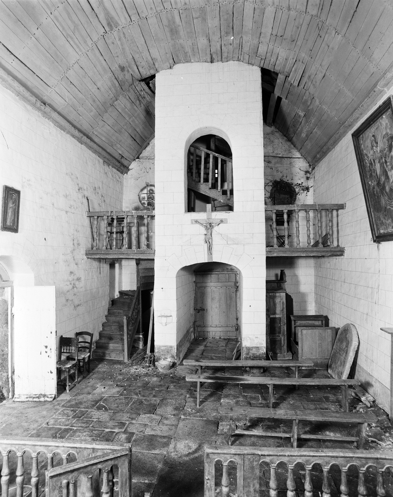 Chapelle, vue générale vers la nef et la tribune.Immatriculation