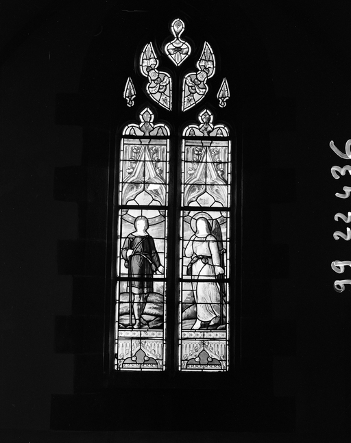 Vitrail - Sainte plus ange et sainte bâton à la main.Immatriculation