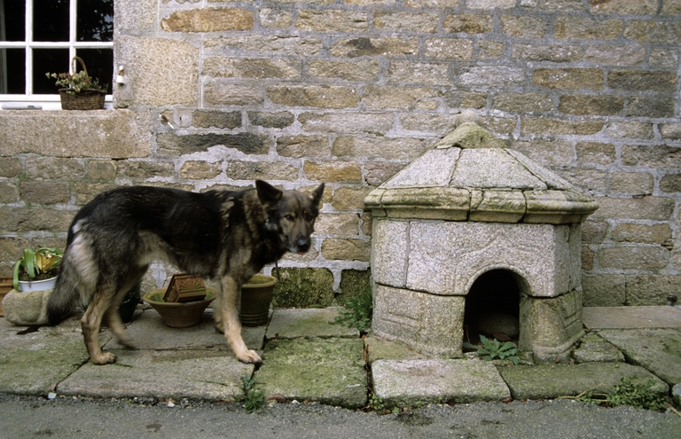 Elévation sud, détail de la niche à chien.Immatriculation