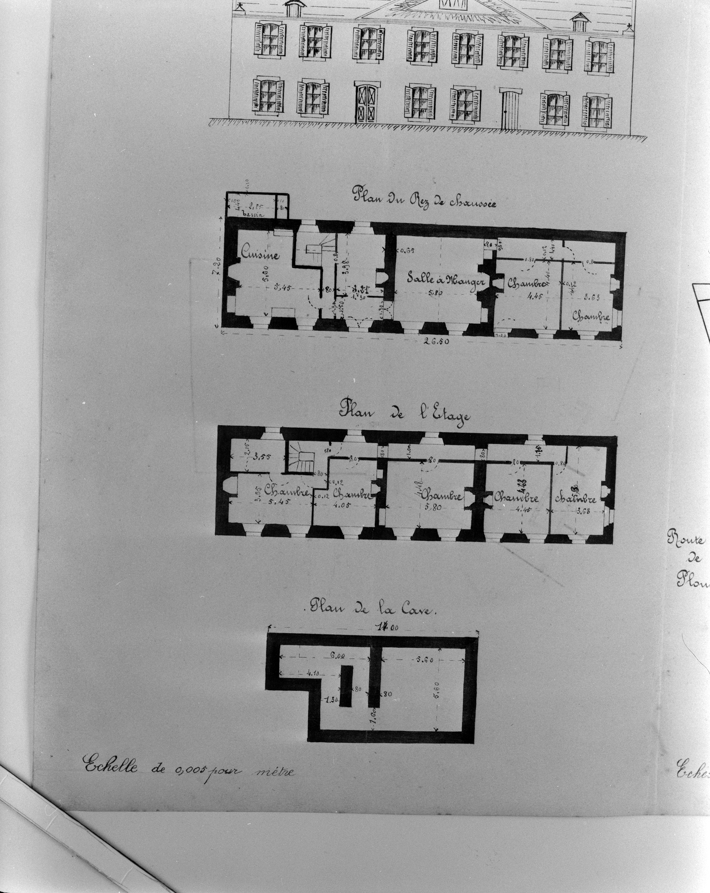 Aliénation du presbytère et de ses dépendances. Plan 1908. Plan au sol du rez-de-chaussée de l'étage, et de la cave. Lorient, 23 mars 1908.Immatriculation