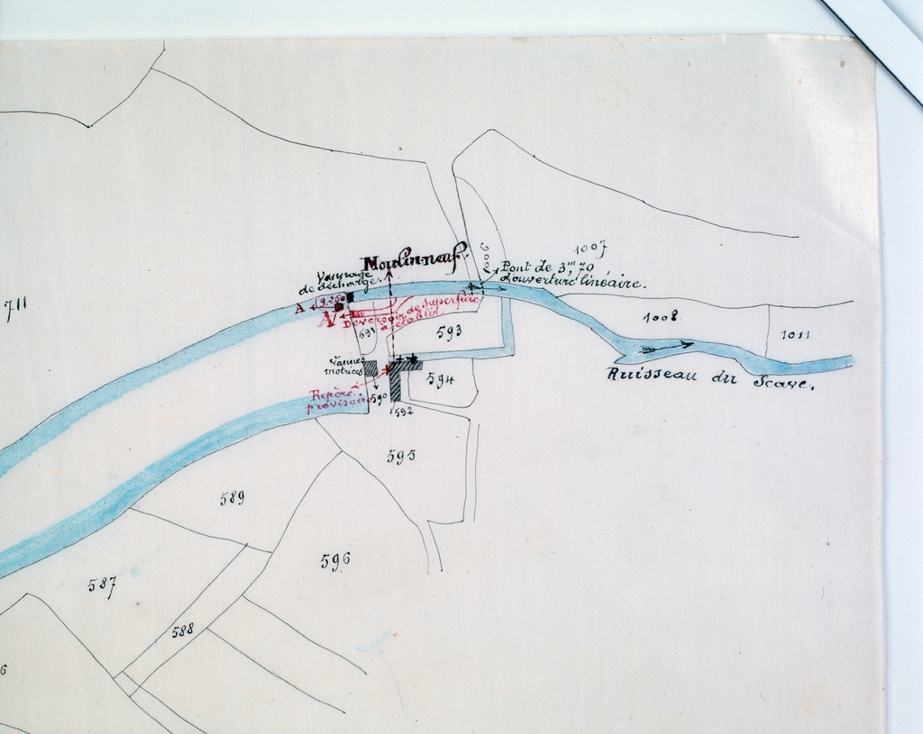 Plan général : 'le Moulin Neuf sur le ruisseau du Scave, affluent du Scorff', détail.Immatriculation