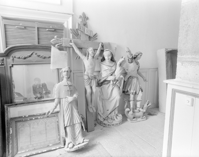 Vue d'ensemble de la statuaire déposée de la chapelle.Immatriculation