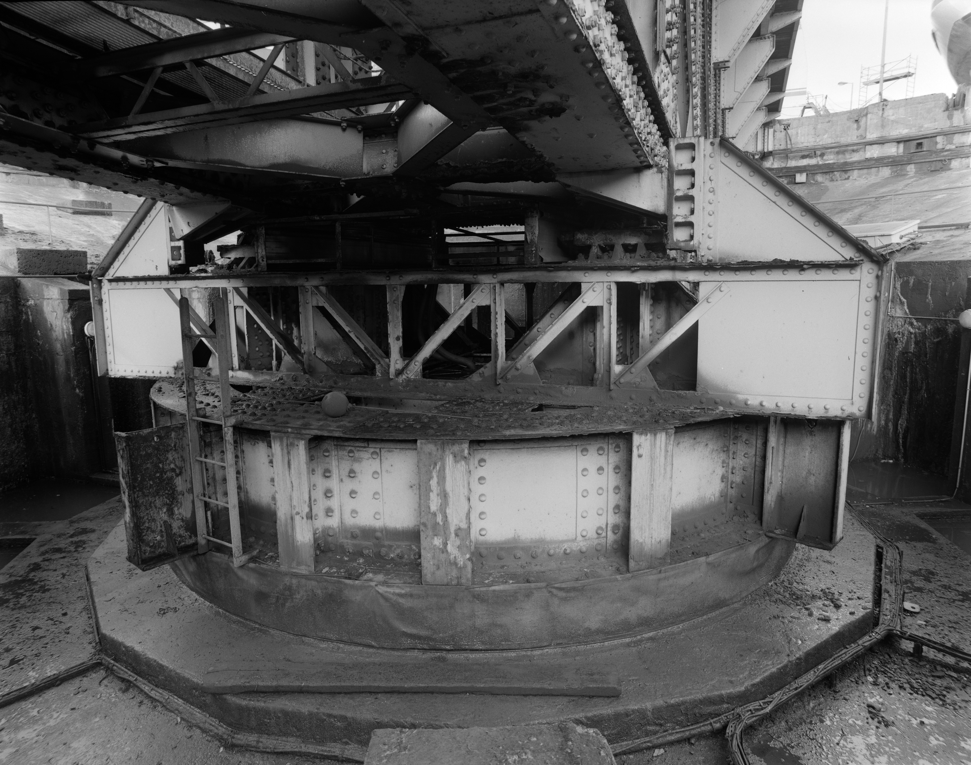 Vue de détail du pont basculant et tournant dans sa fosse bétonné en 2000 : axe centralImmatriculation