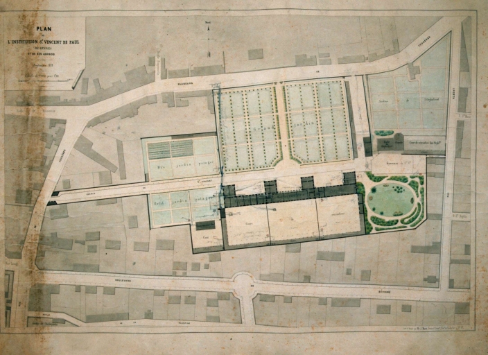 Plan de l'institution Saint-Vincent de Paul et de ses abords, 1878 (A. P. Saint-Vincent)Immatriculation