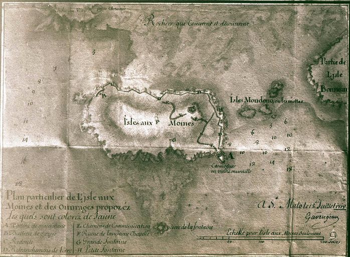 Perros-Guirec : plan du projet de batteries et redoutes de l'île aux Moines par Garangeau daté du 15 juillet 1718Immatriculation