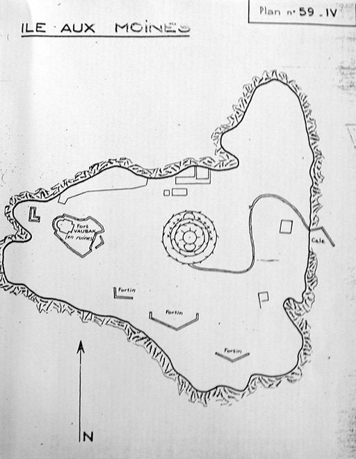 Plan de l'ensemble fortifié de l'Île aux Moines pendant la Seconde Guerre mondiale (extrait du rapport Pinczon du Sel)Immatriculation